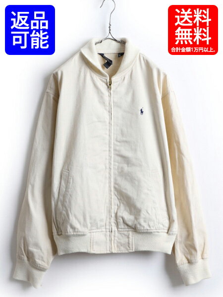 80's 90's ■ POLO ラルフローレン フルジップ コットン U.S.ARMY タンカースタイプ ジャケット ( メンズ 男性 M ) 古着 ラルフ ジャンパー| 【US古着】中古 ポロ RALPH LAUREN 80年代 90年代 アイボリー 生成り アウター ポニー 刺繍 ワンポイント ブルゾン ショールカラー