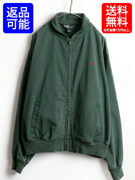 90's 大きいサイズ XL ■ POLO ポロ ラルフローレン フルジップ コットン U.S.ARMY タンカースタイプ ジャケット ( メンズ 男性 ) 古着 緑| 【US古着】中古 RALPH LAUREN 90年代 ジャンパー ブルゾン ミリタリー ポニー 刺繍 ワンポイント ショールカラー グリーン アーミー