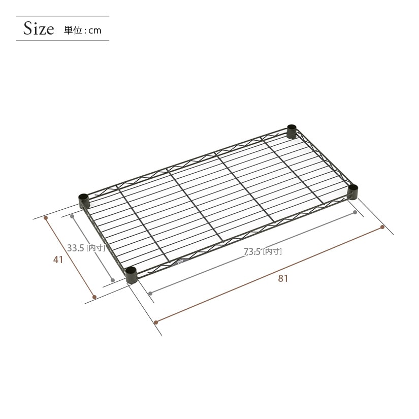 商品仕様 商品シリーズ ルミナスノワール スチールシェルフ 幅80 奥行40 外形寸法 幅81×奥行41cm シェルフ内寸 幅73.5×奥行33.5cm 備考 同規格の棚板を使用したラックへの追加、ルミナス25mmパーツとの組み合わせが可能です。