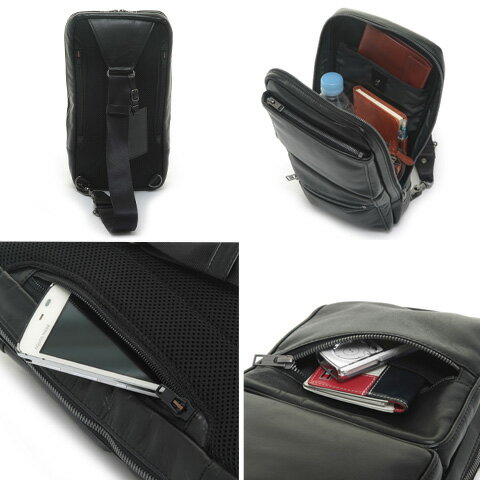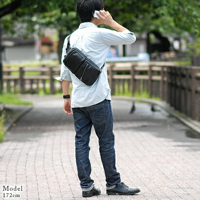 あえて革の素材感を消し、新たな質感を追求した斬新な生地が魅力的なボディバッグ!表革は撥水・撥油性に優れた加工を施しているので突然の雨にもしっかり対応します。