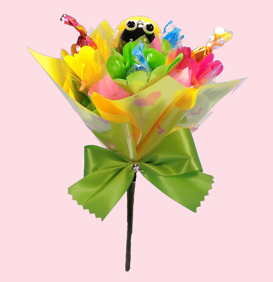 爽やかなミニブーケ! 内容 キャンディ8個 チョコ1個 サイズ 高さ180×横140×奥行110mm 賞味期限 1ヶ月以上〜 原産国 日本 保存方法 高温多湿をお避け下さい キャンディブーケに利用するキャンディ・チョコレートは、季節や在庫状況により変わる場合もございます。